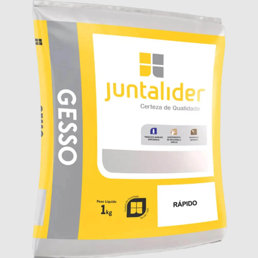 Indicado para fixação de forros e modelagens de placas, o gesso de pega rápida serve para aplicações pontuais e pequenos reparos. Imagens meramente ilustrativas.
